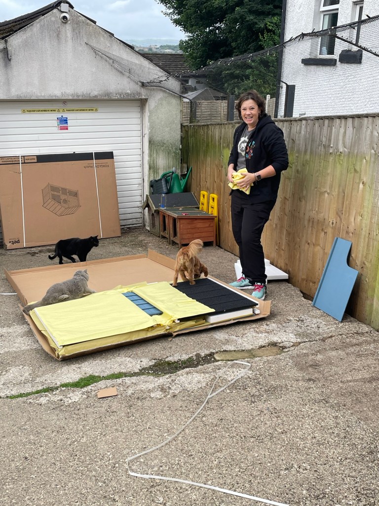 Tuesday morning we went to the rescue. I cleaned Kitty Cottage and Sara put two new rabbit hutches together. Afterwards, volunteer Carol, Katie, Flora, Sara and I had a stellar fish and chips lunch.